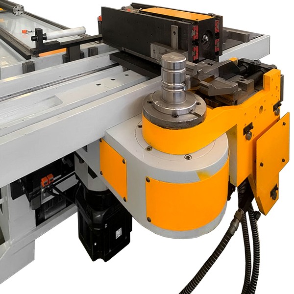 Эта система состоит из корпуса головки, шпинделя, конических роликовых подшипников, пластинчатой цепи и главного цилиндра. Главный цилиндр тянет пластинчатую цепь, закреплённую на шпинделе, чтобы вращать шпиндель. На шпинделе закреплён гибочный рычаг, а на гибочном рычаге — зажимная матрица для фиксации трубы. Вращение гибочного рычага обеспечивает желаемый эффект гибки трубы.