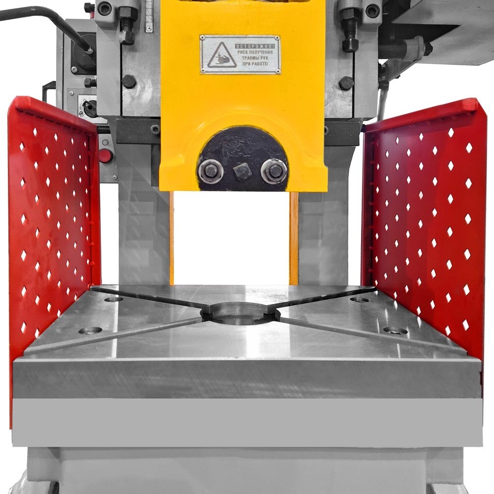 - С-образная открытая конструкция станины обеспечивает удобный доступ к рабочему столу с трех сторон, упрощая погрузку и разгрузку изделий, а также позволяя механизировать производственный процесс.
