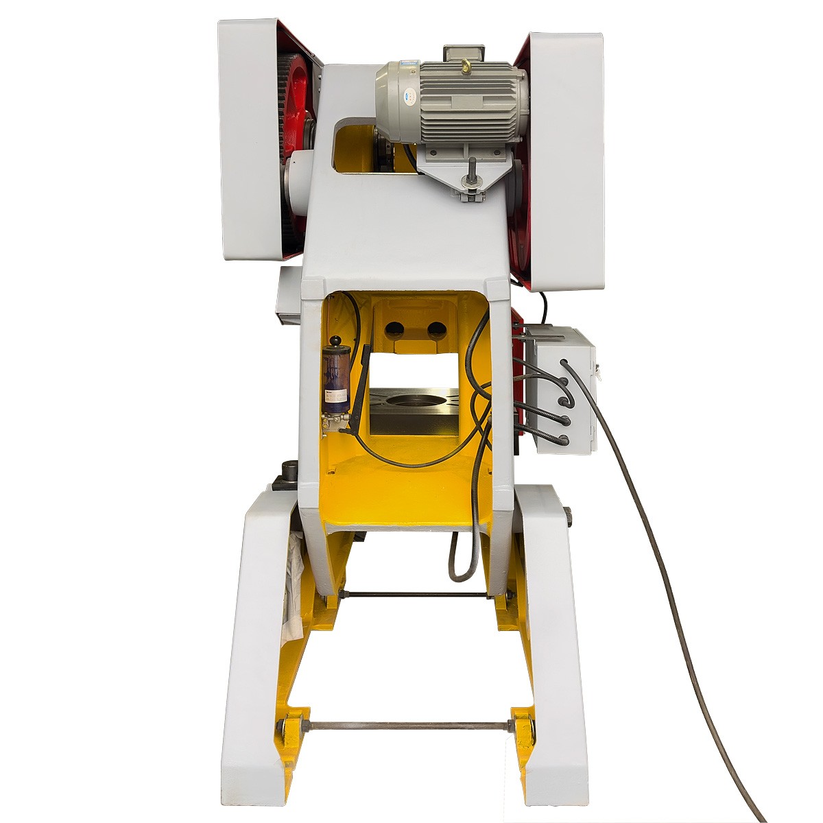 Пресс оснащен трехфазным асинхронным двигателем. Электрошкаф и линия управления защищены автоматическим выключателем. Электрошкаф установлен на левой стороне станины.