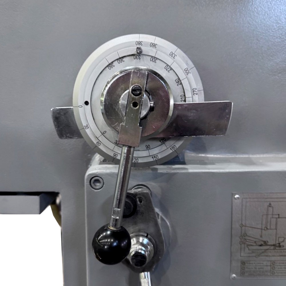 В станке имеются механизм, позволяющий настраивать станок на определенную длину обработки детали, механизм регулировки находится на правой стороне станины станка.